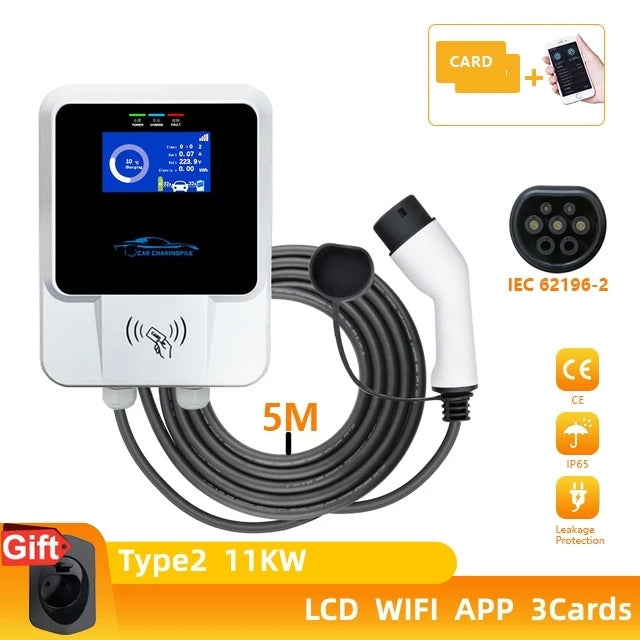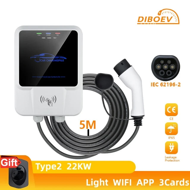 EV Charging Station: Wall-Mounted EVSE with Vope2 and IEC Powered SULVope1, Wi-Fi Enabled, 32A, 7KW, 11KW, 22KW