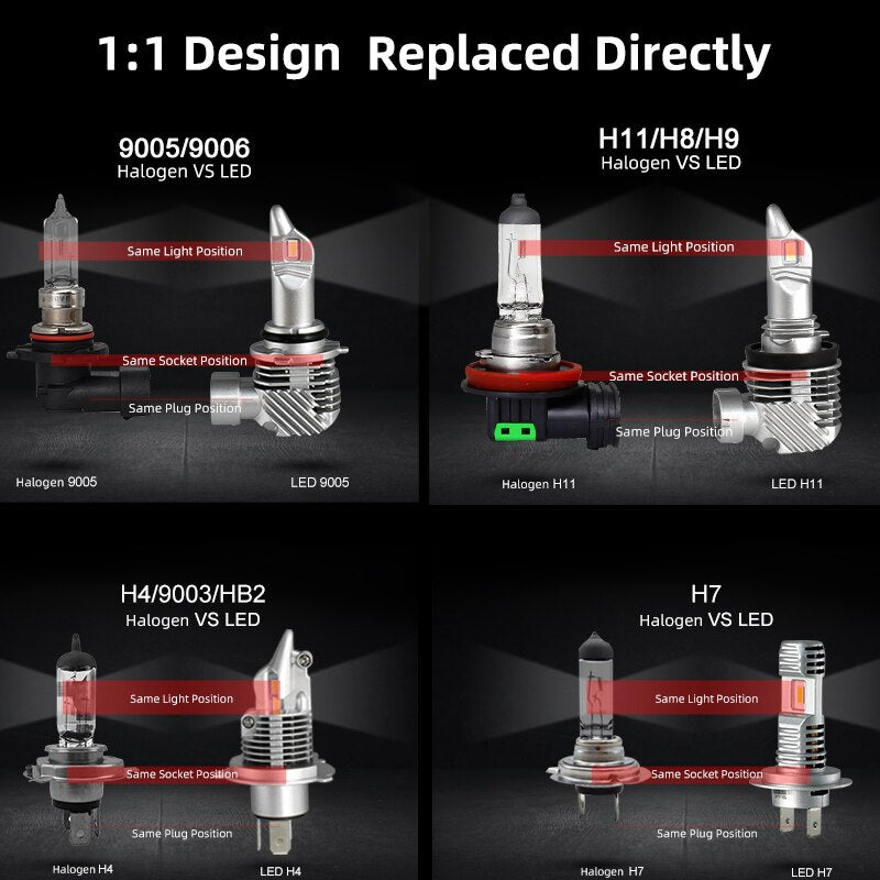 CNSUNNYLIGHT Newest 1:1 Size H11 H4 H7 Mini LED Car Headlight Bulbs Wireless 9005 9006 HB3 HB4 H8 6000K White Auto Fog Lights