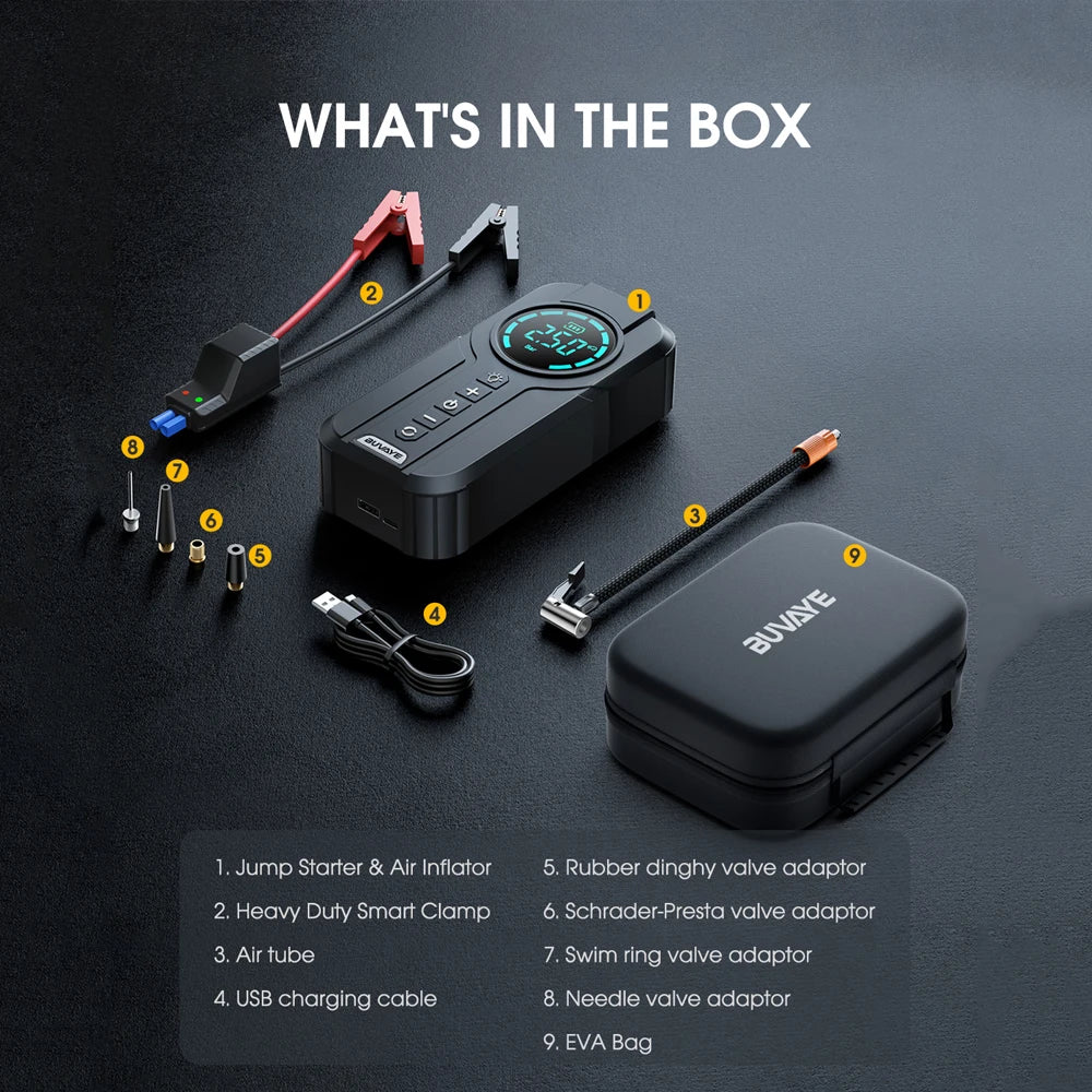 Démarreur de voiture Pompe à air Power Bank Eclairage Compresseur d'air portable 4 en 1 Démarreurs de batterie de voiture Démarrage Auto Gonfleur de pneu