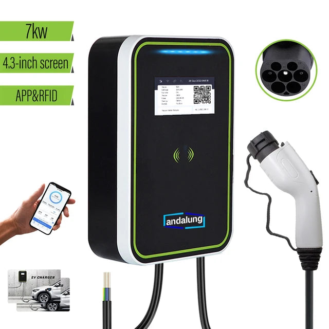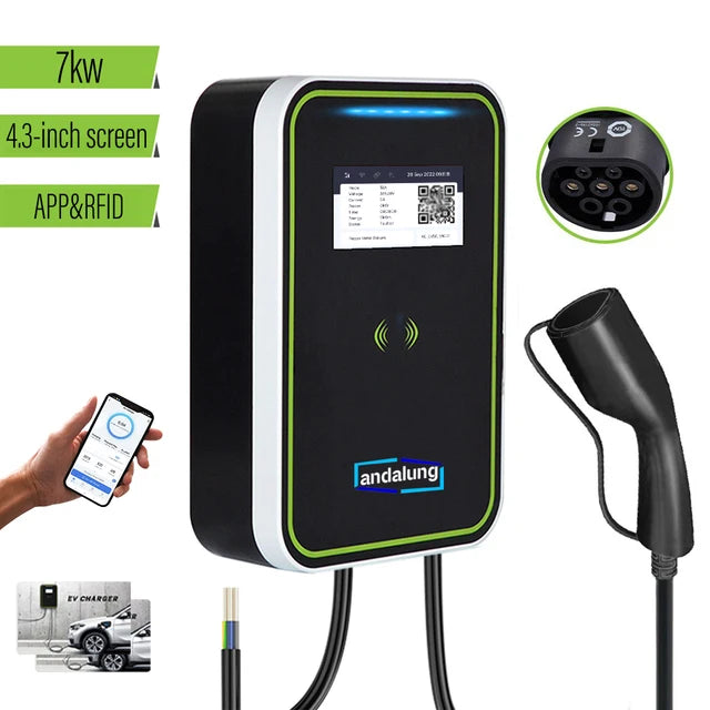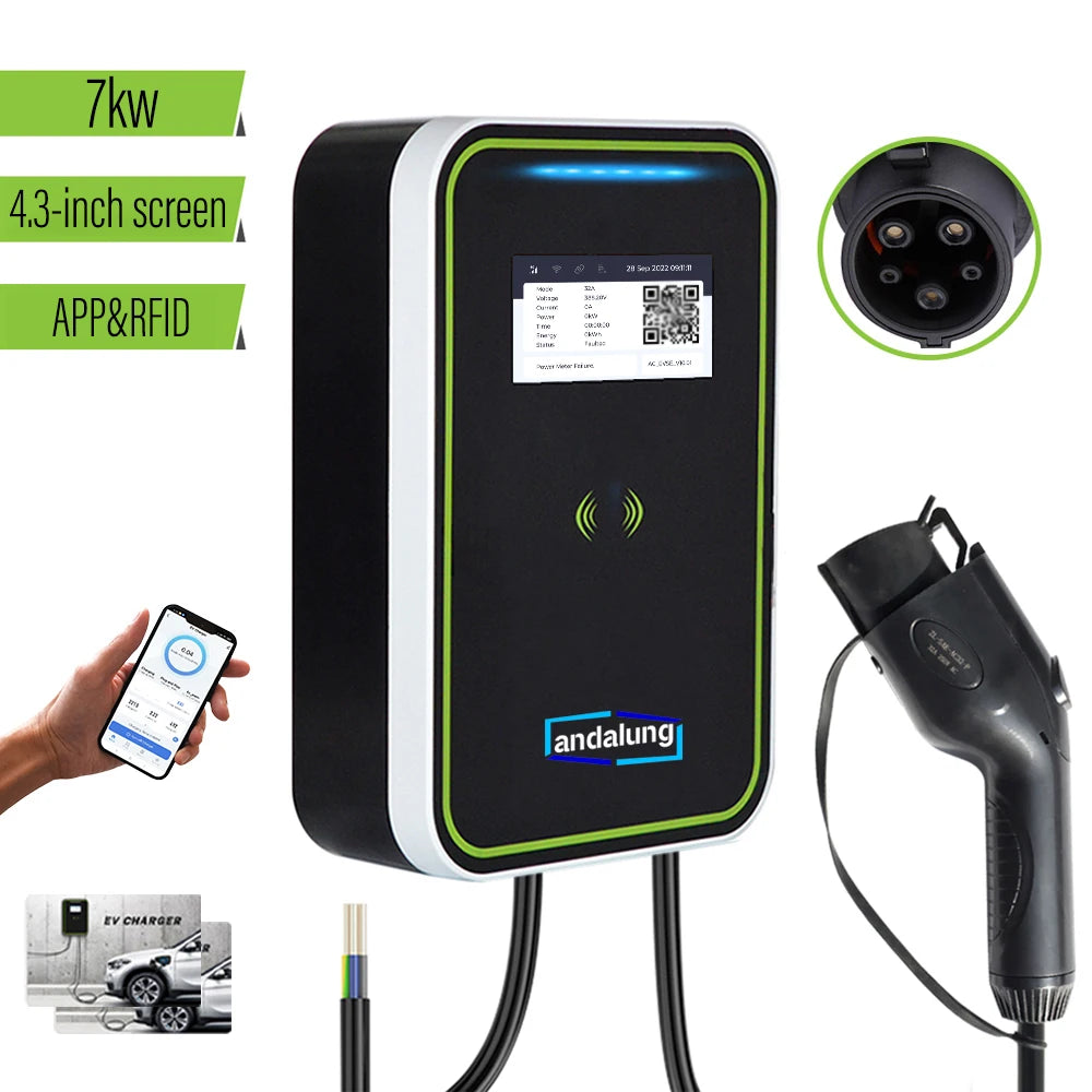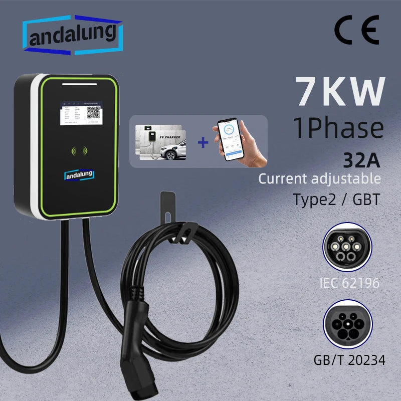 7KW EV charging station with WiFi control, RFID cards, and wall mounting. Voge2, GBT 32A EVSE.